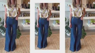 Farm Rio Light Blue Romantic Richelieu Euroflax Linen Blouse